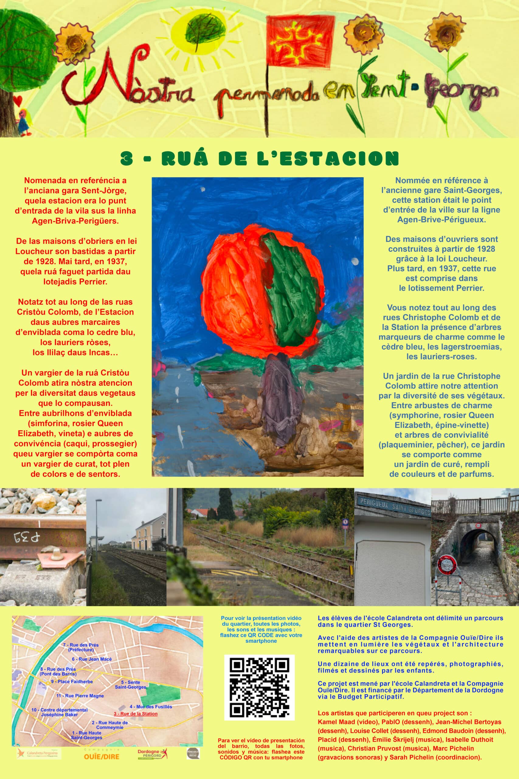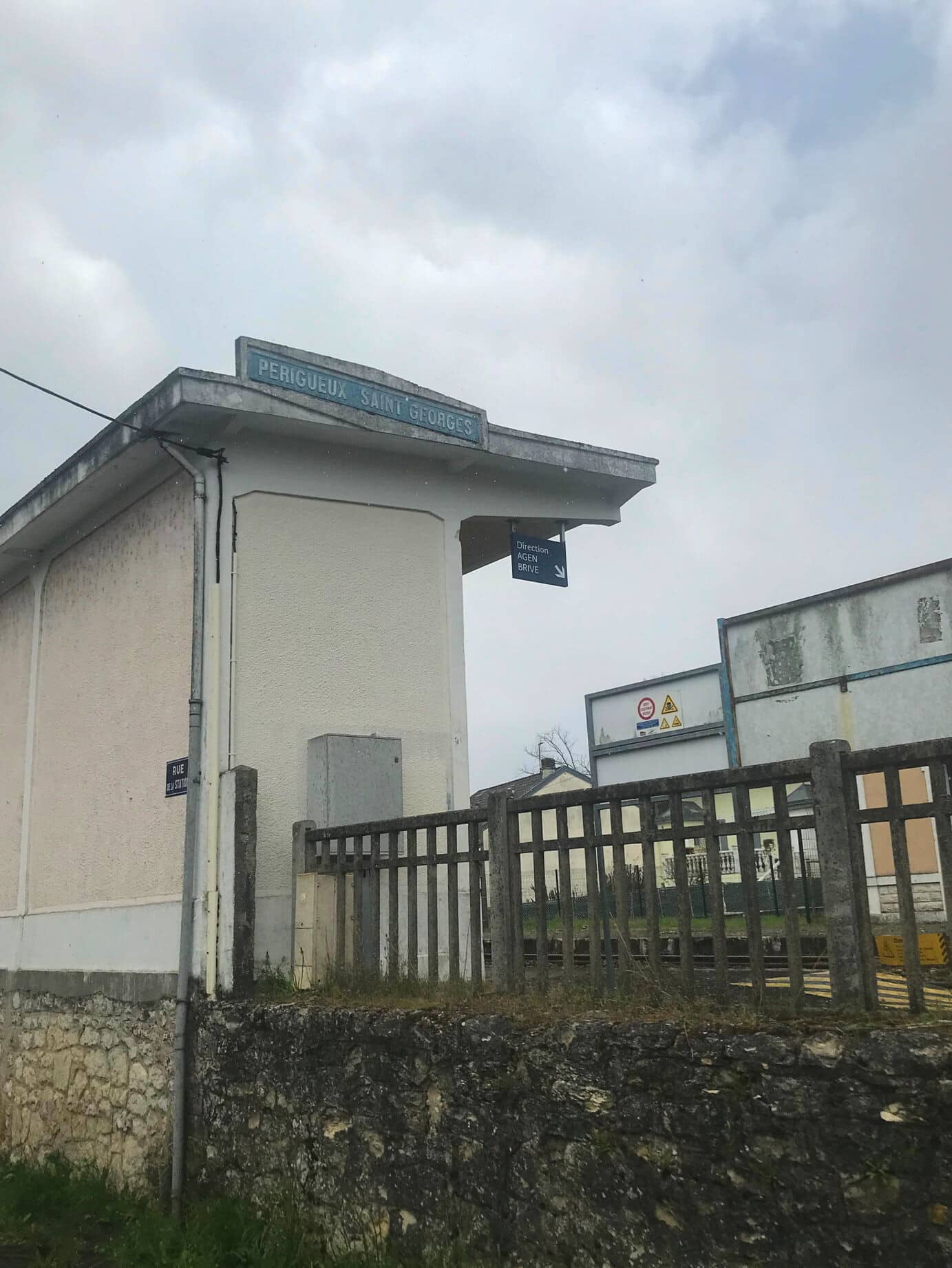 Prend son nom lo 17 de mai de 1906, que ‘la tira de l’estacion de chamin de fer de Perigüers Sent Jòrgi aüei desafectada. Quela estacion era un punt d’arrest a l’entrada de la vila sus la linha Agen-Briva-Perigüers.
