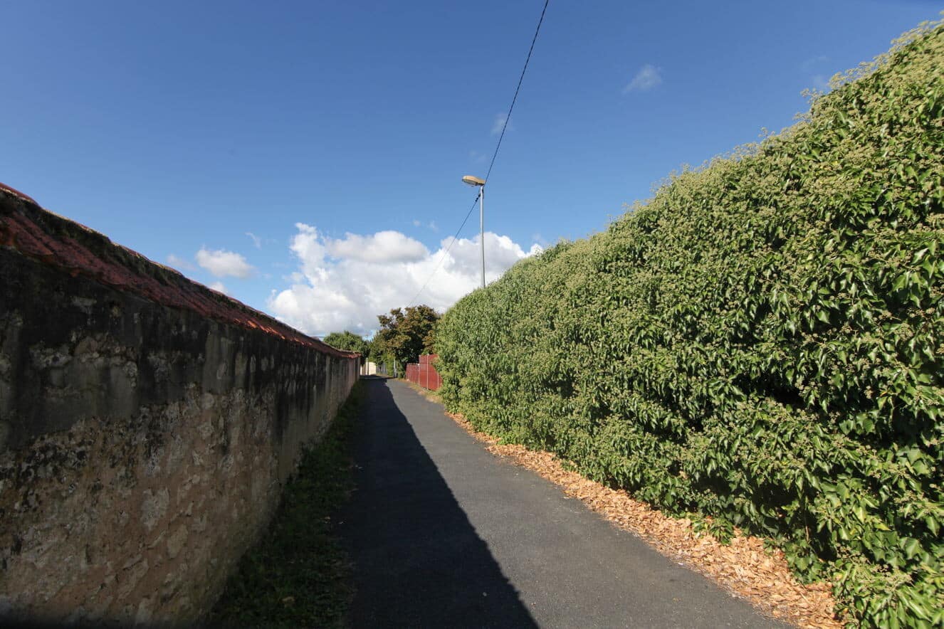 La vegetacion qu’anima quela ruá es mai que mai compausada de marcaires d’enviblada coma los rosiers archeliers, lo miugranier, lo lilaç daus Incas … Quauques uns son marcaires d’usatge coma lo telhòu. Un autre nos interessa mai, es lo palmier. Es quilhat davant la maison tau un protector, marcaire culturau sacrat. En Dordonha, siguet a la mòda a partir de la fin dau segle XIX dins las maisons borjas tau un marcaire sociau, signe exterior de richessa. Dau fach que siá plantat solet, quel aubre es un marcaire sociau que coma dau costat de Bordeu, disiá au monde que los de quela maison avián perdut un filh pendent la guerra de 14.