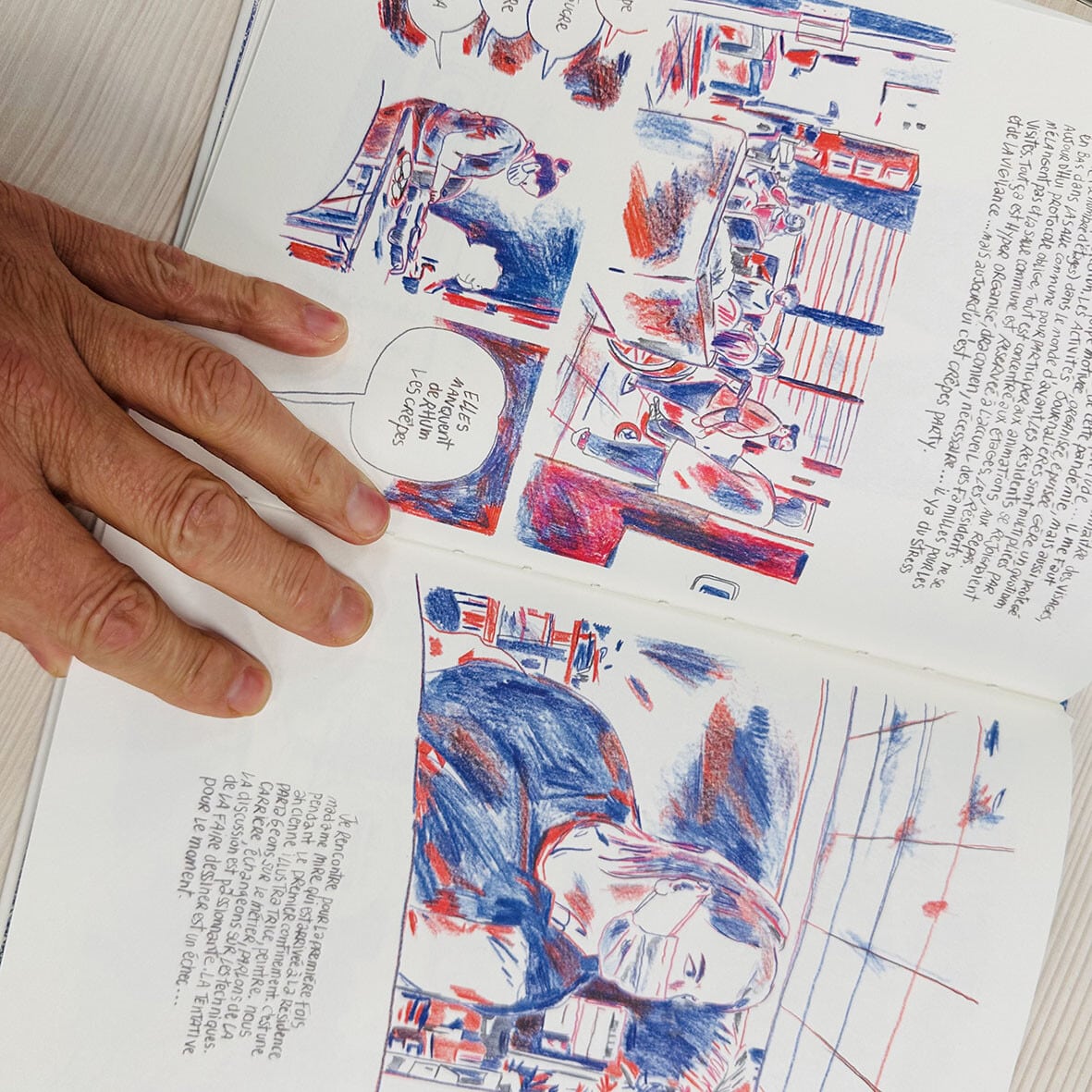 Gilles Rochier a été en résidence quelques semaines dans une maison de retraite.Interrompu par la pandémie, il a poursuivi son travail, à distance, avec le personnel de l’établissement.