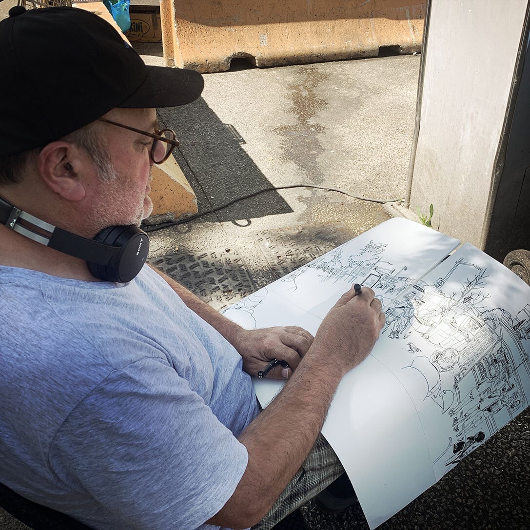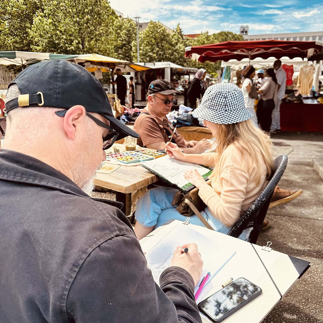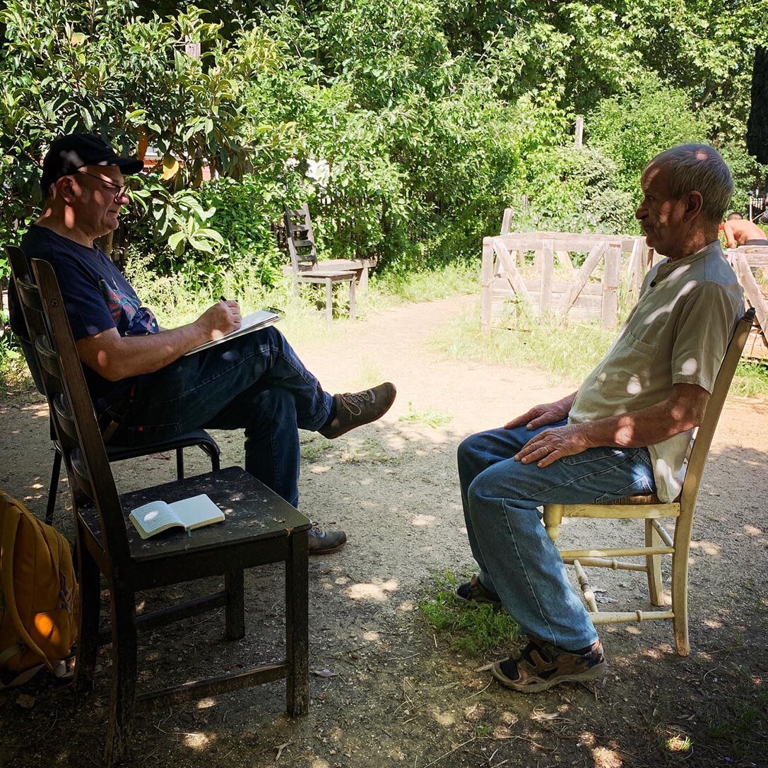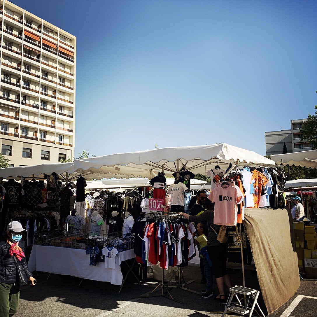 Sur la place Romée de Villeneuve le marché bat son plein. Non loin de là, les artistes de la Compagnie Ouïe/Dire arpentent les rues du quartier à l’affût des moindres événements, à l’écoute des paroles des habitants et en quête des petits récits qui fabriquent depuis 60 ans l’histoire d’Encagnane.