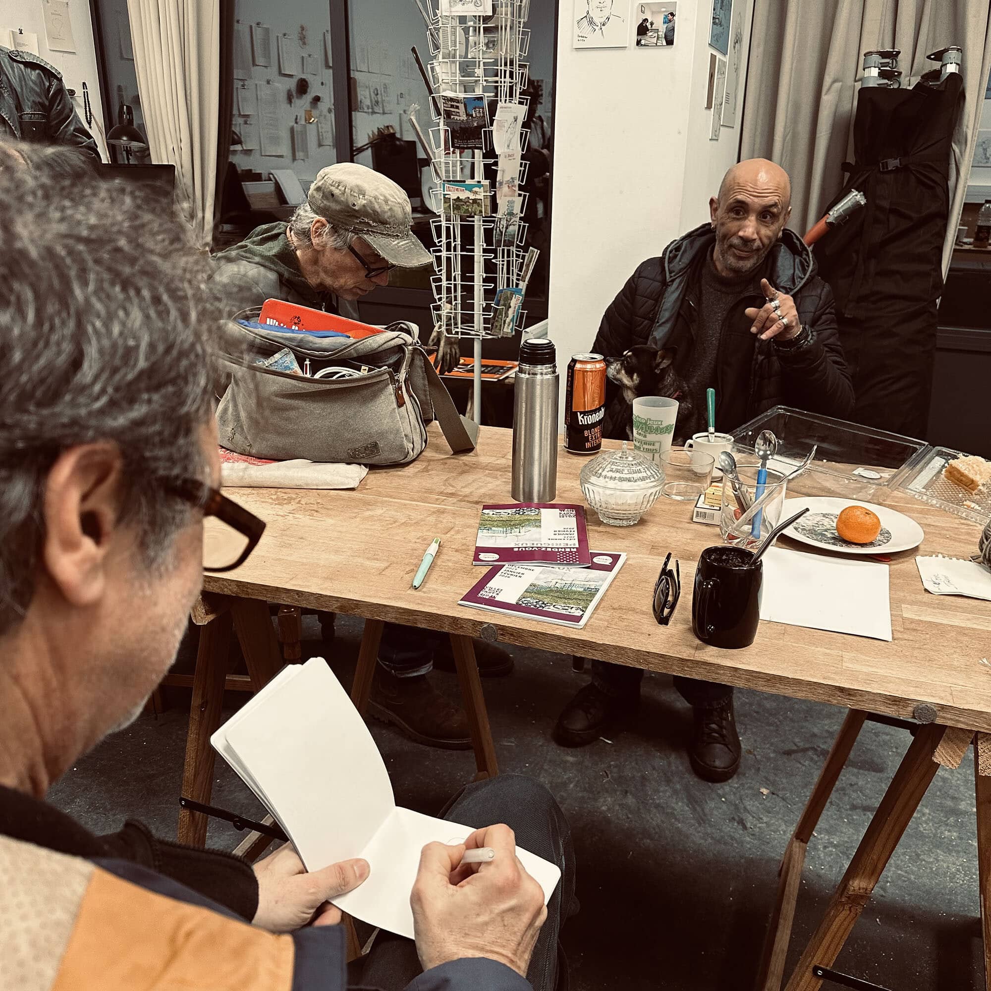 Placid, Marion Renauld, Joël Thépault passent une semaine de résidence impromptue avec Marc Pichelin.