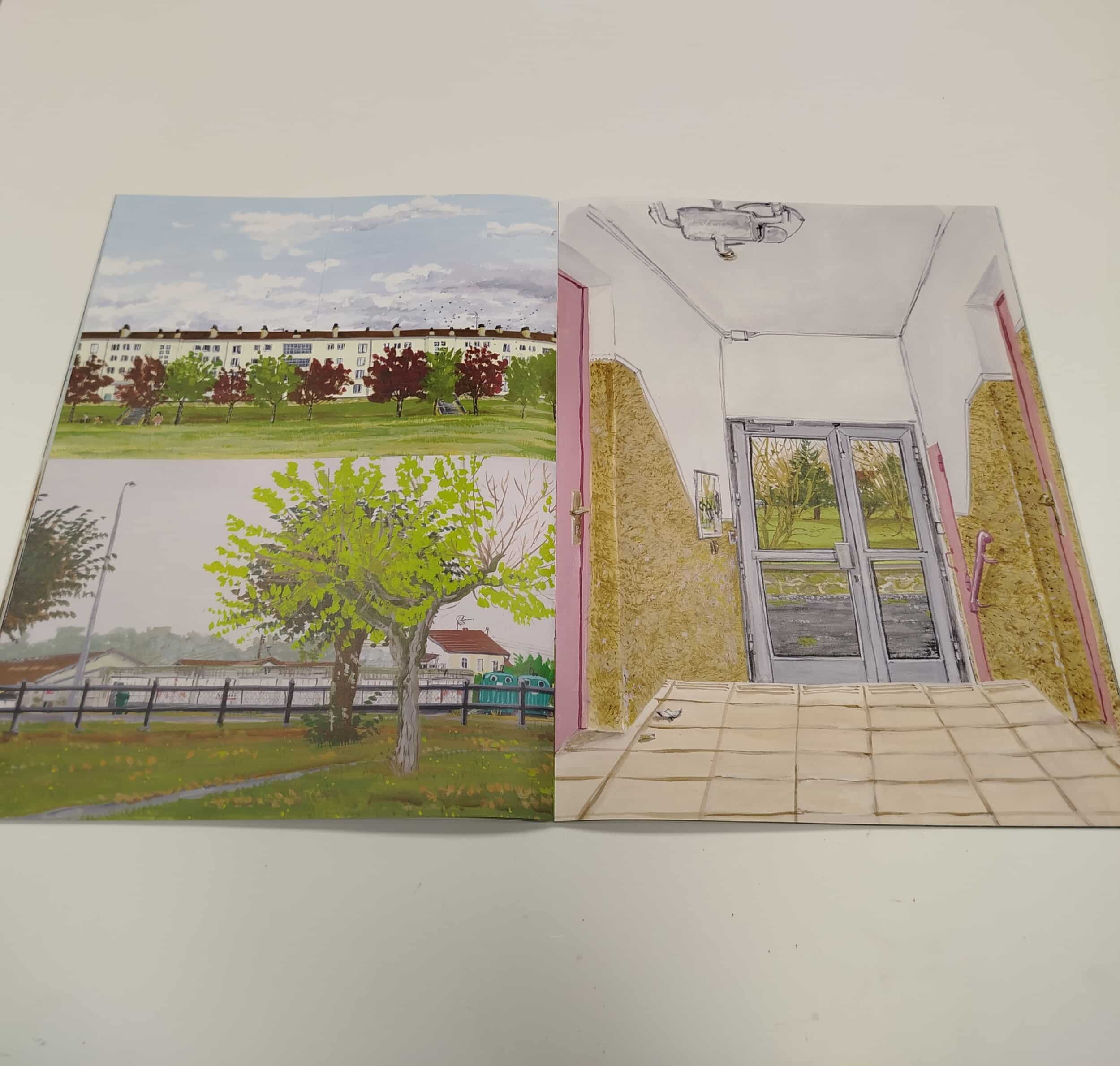 Pendant deux ans, l’artiste a sillonné Chamiers, peignant la ville d’après nature, directement sur le motif. Sous son pinceau, un immeuble HLM, une voie de chemin de fer, une maison ou une cabane de jardin se transforment en paysages remarquables.