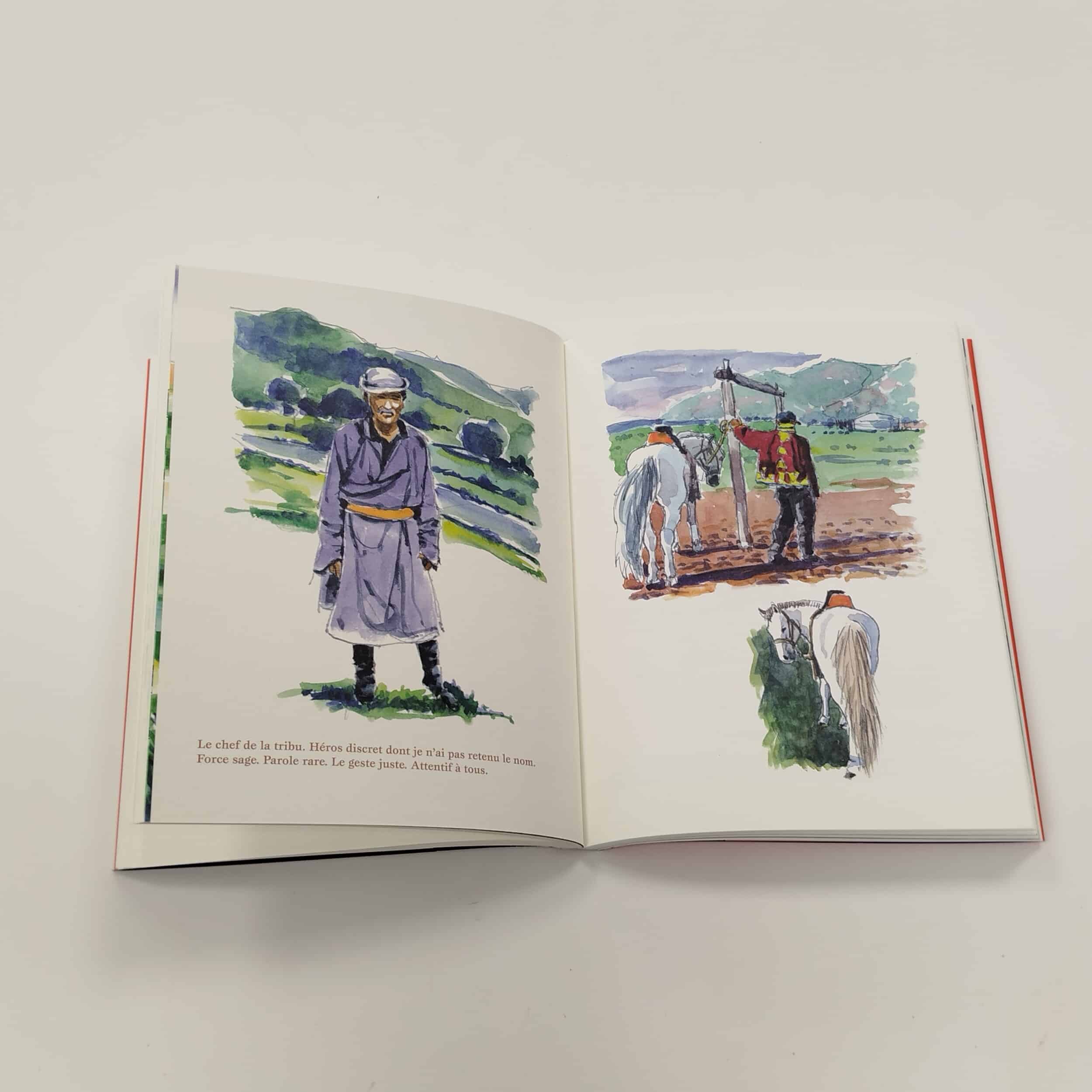 Muni d’un simple carnet de croquis, José Correa part à la découverte d’un pays. Il va à la rencontre des grands espaces peuplés de chevaux, de troupeaux, de yourtes et d’histoires anciennes où Gengis Khan côtoie Coca-Cola. Il observe la vie des gens simples, il note, il écrit, il consigne. Il croque les paysages, les hommes, les femmes, les enfants, les animaux et les nuages. Il dessine l’horizon mongol. Il embarque le lecteur dans une errance tranquille.