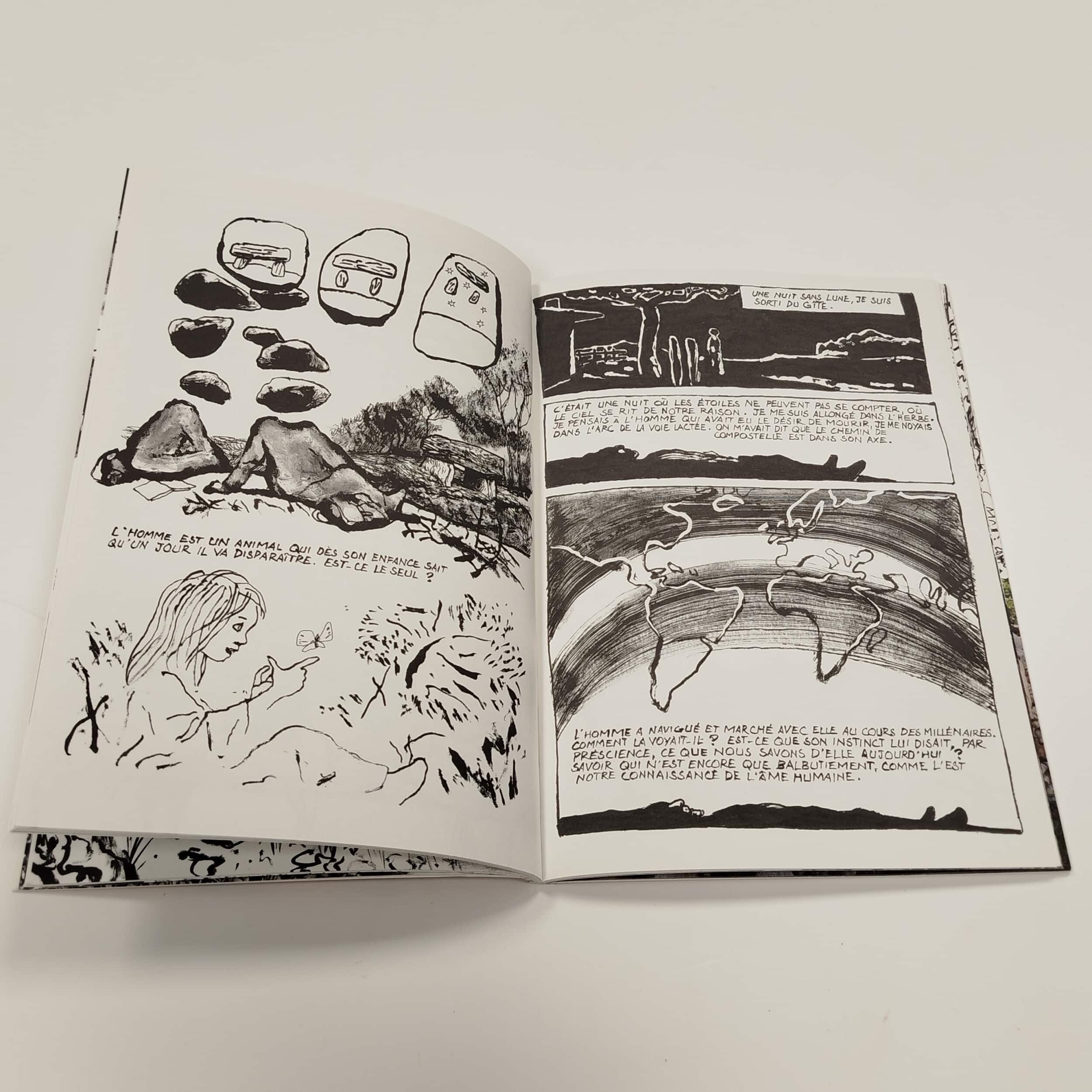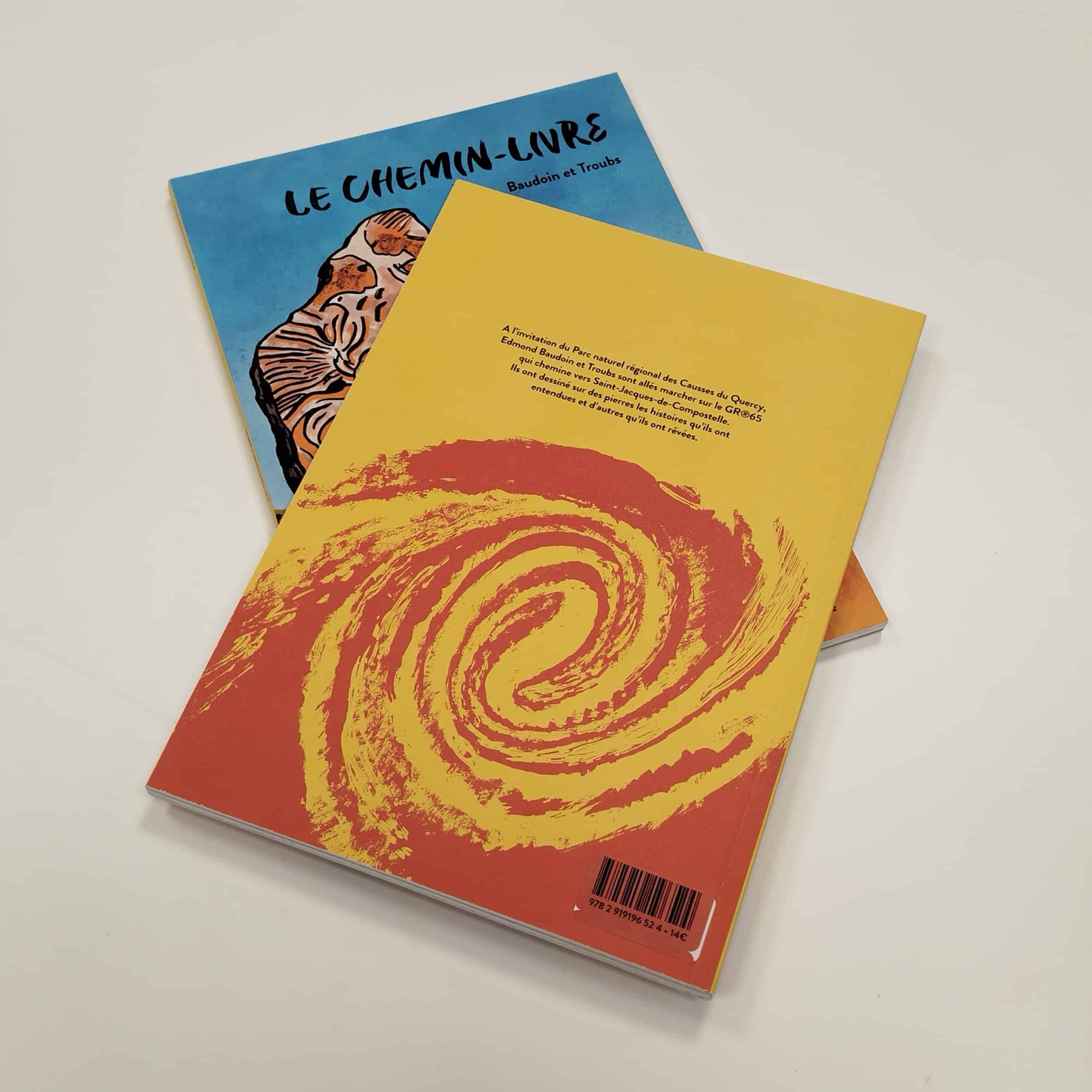 C’est l’histoire de deux livres. Le temps d’un séjour dans le Quercy en mai 2019, Troubs et Edmond Baudoin ont arpenté le GR®65, voie mythique qui chemine vers Saint-Jacques-de-Compostelle. Au gré des déambulations, ils ont vécu et partagé des moments forts avec les habitants de cette terre caussenarde. Ils ont aussi croisé des pèlerins et des randonneurs de passage. Ces rencontres ont inspiré de courtes histoires qu’ils ont peintes sur les pierres du pays. Les pierres dessinées ont ensuite été bâties dans les murets qui longent le chemin, au rythme des bâtisseurs. L’un et l’autre vous invitent à un voyage imaginaire ou réel, géographique, humain ou spirituel.