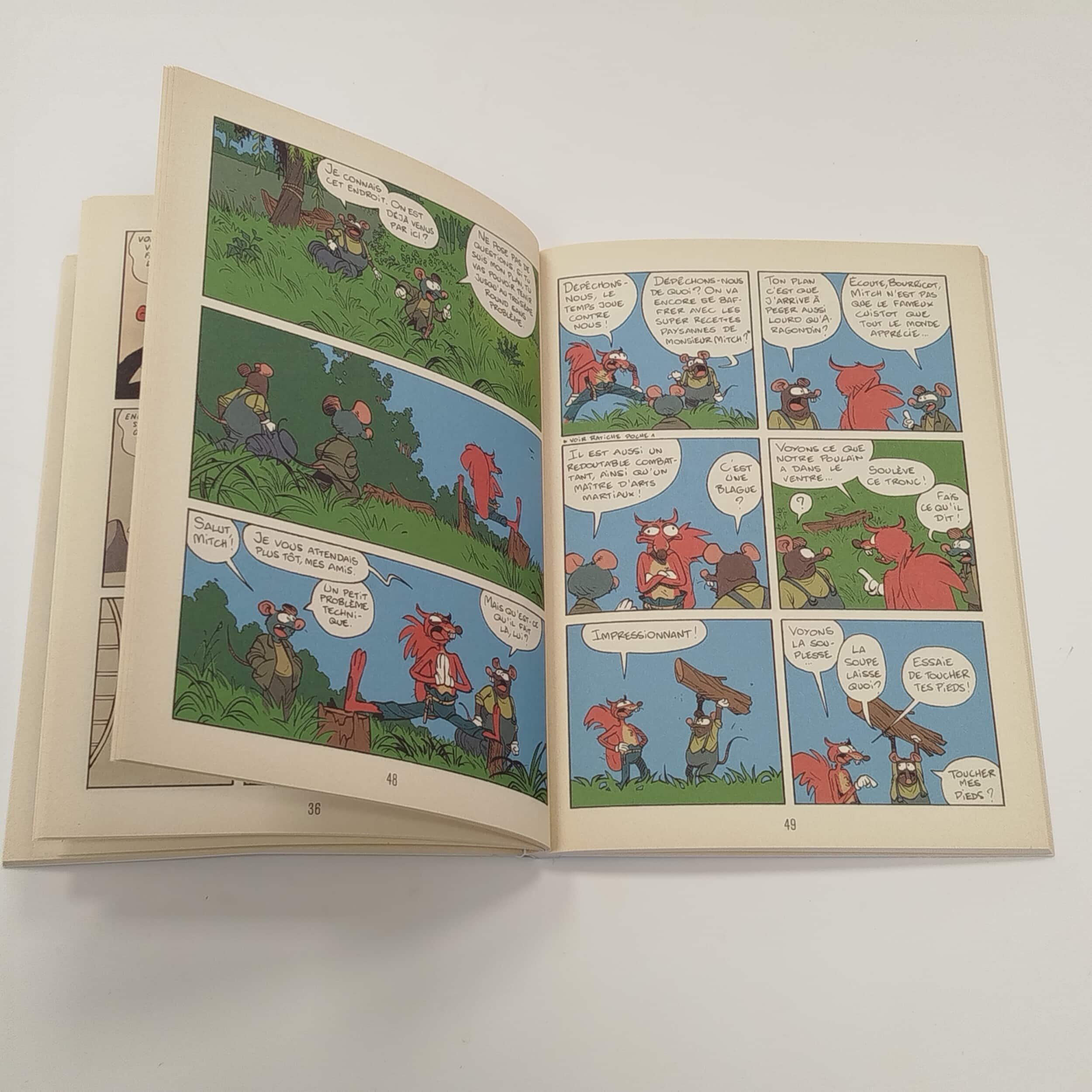 Un numéro 100% sport, avec de la bagarre. Ratiche est fauché et en plus de ça, Bajou squatte son minuscule appartement. Il décide de se débarrasser de ce personnage envahissant et bavard. Il le met à la porte. Seul et désemparé, Bajou rencontre Furax le commerçant ambulant qui lui offre la possibilité de trouver le gite et le couvert gratuit. Furax vend Bajou au laboratoire expérimental de la Dordogne et en fait un cobaye pour les expériences du redoutable Professeur Tripounet. Dans sa nouvelle prison, Bajou rencontre Beta et El Molason, deux autres victimes du Professeur Aveyronnais. En réunissant leur force, ils réussiront à s’évader de cet enfer. Pendant ce temps, Ratiche doit trouver de l’argent. Il accepte de signer un contrat pour une combat de boxe qui oppose son copain Bourricot au terrible Aragondin. Bourricot se laisse convaincre et démarre aussitôt un programme d’entrainement intensif avec Mitch, un maître de l’esquive, de la fuite et des arts martiaux. Le jour du combat, Bourricot est près, mais arrivera-t-il à tenir jusqu’au deuxième round ? Dans ce nouveau numéro, l’univers est en place et les personnages sont bien campés. Les histoires s’enchainent comme dans un album tout en gardant l’esprit d’un magazine pour enfant, drôle et palpitants.