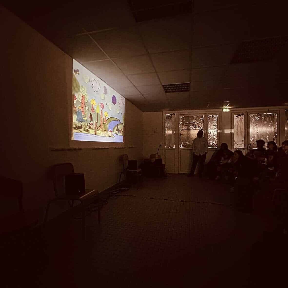 Projection de l'atelier grattage et peinture sur pellicule 35mm