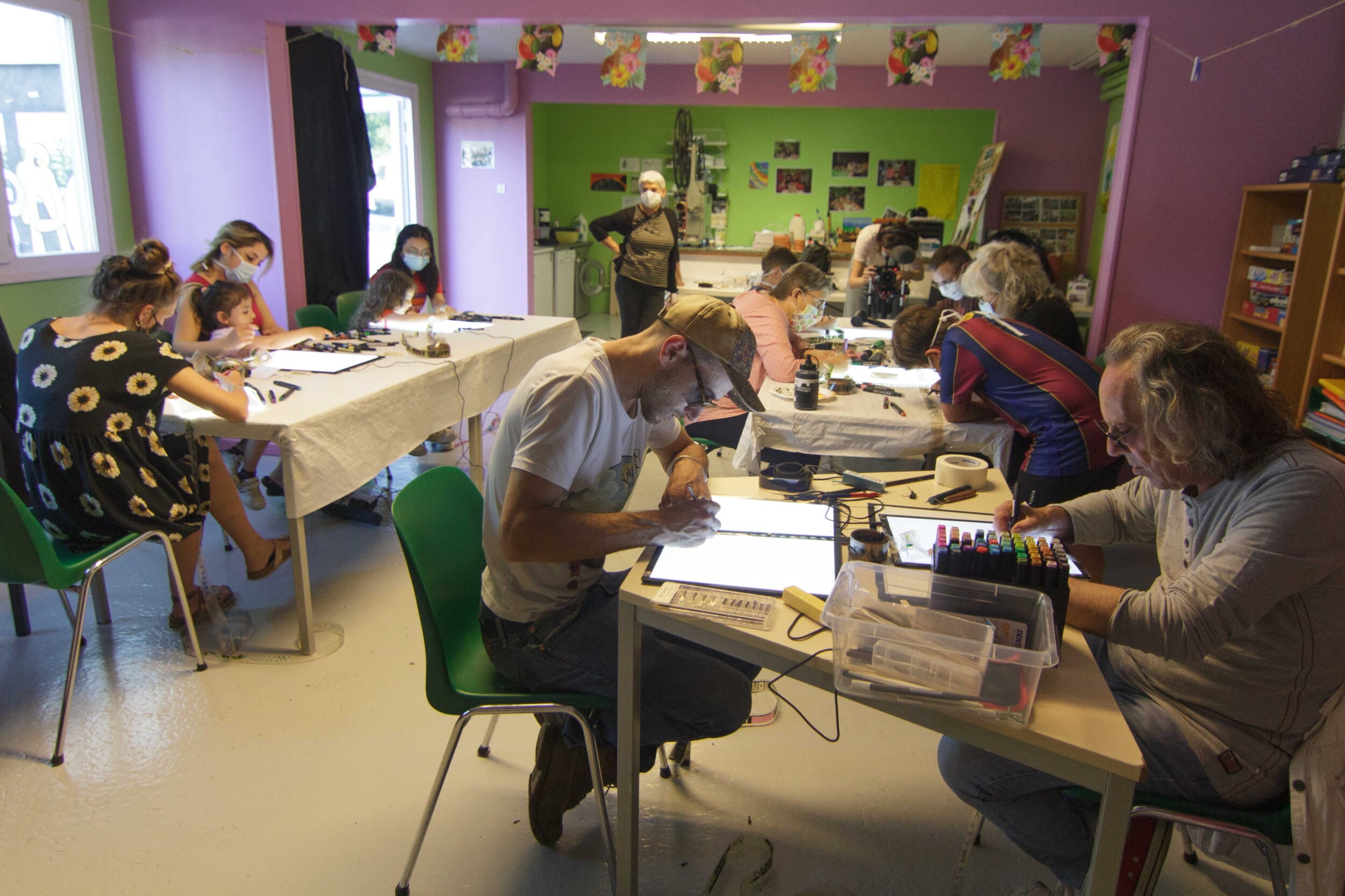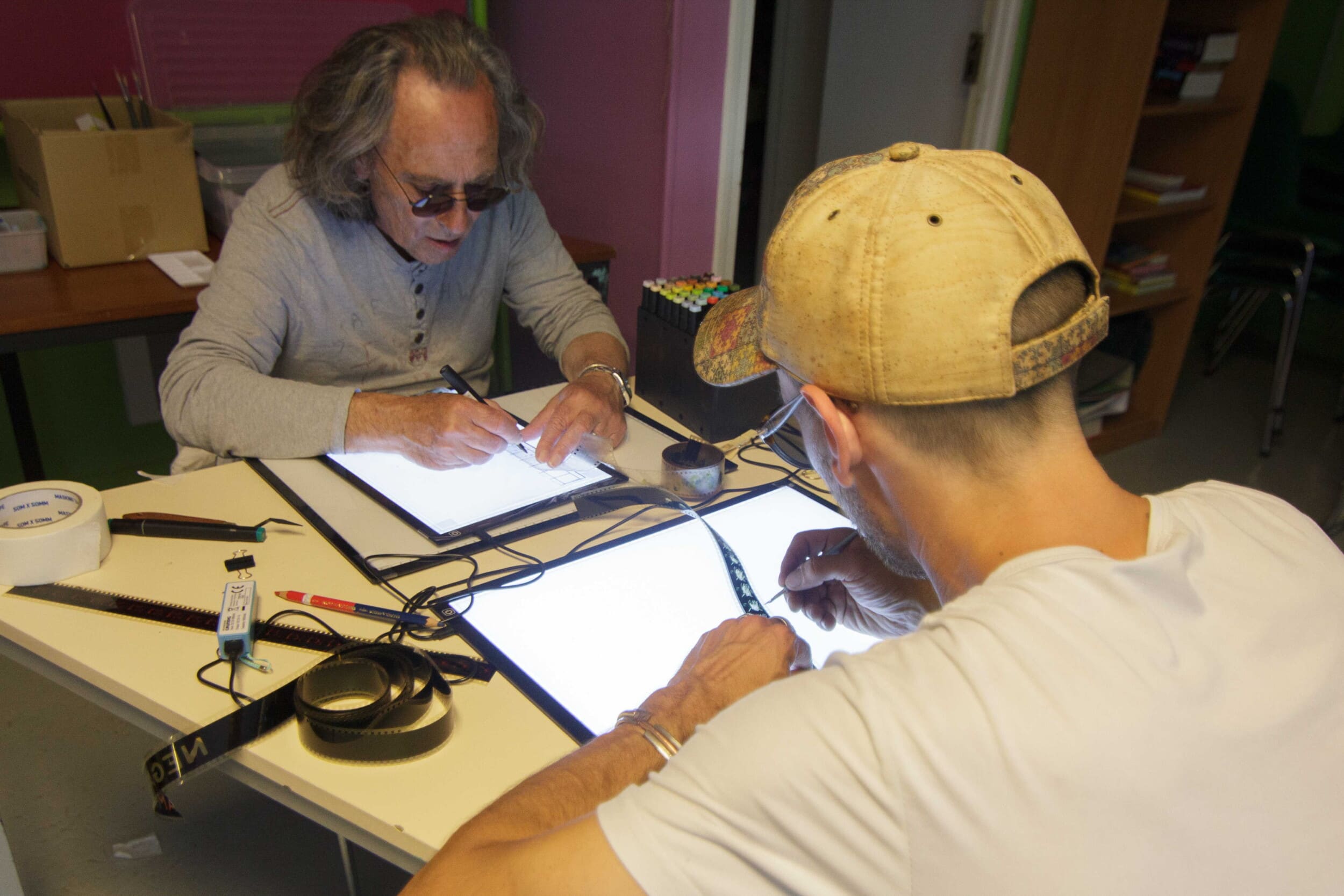 Atelier grattage et peinture sur pellicule 35mm animé par Kamel Maad et Jean-Michel Bertoyas au Centre Social Pagot à Coulounieix-Chamiers en 2021. Avec le soutien de Passeurs d’Images.
